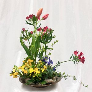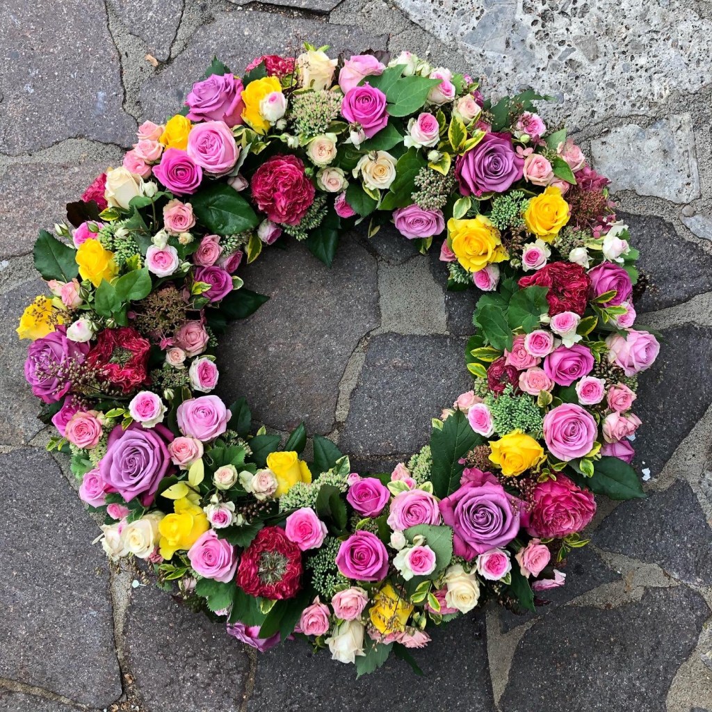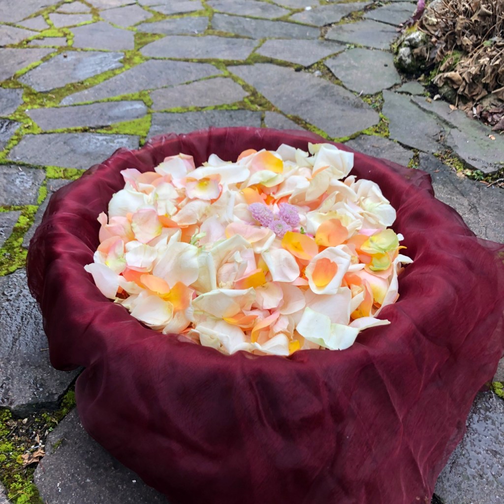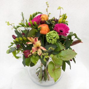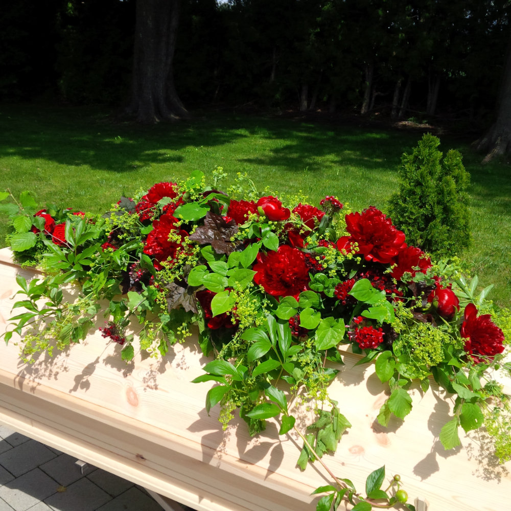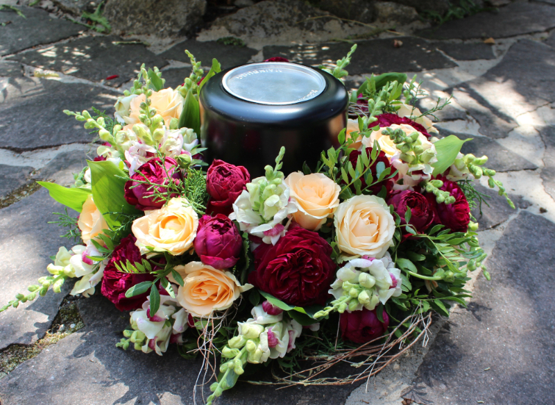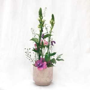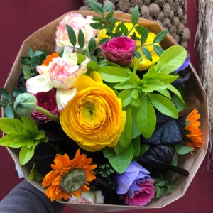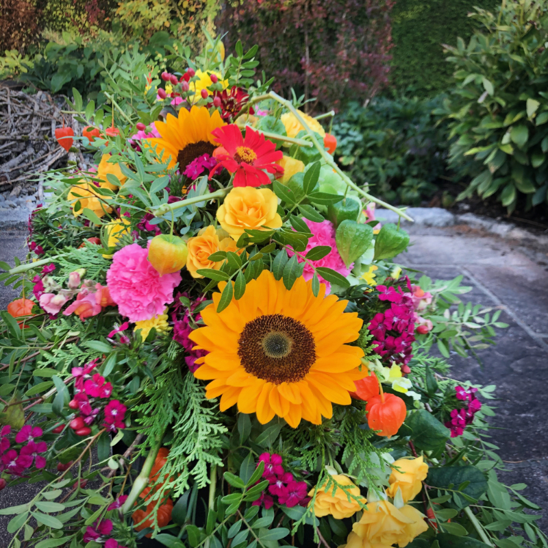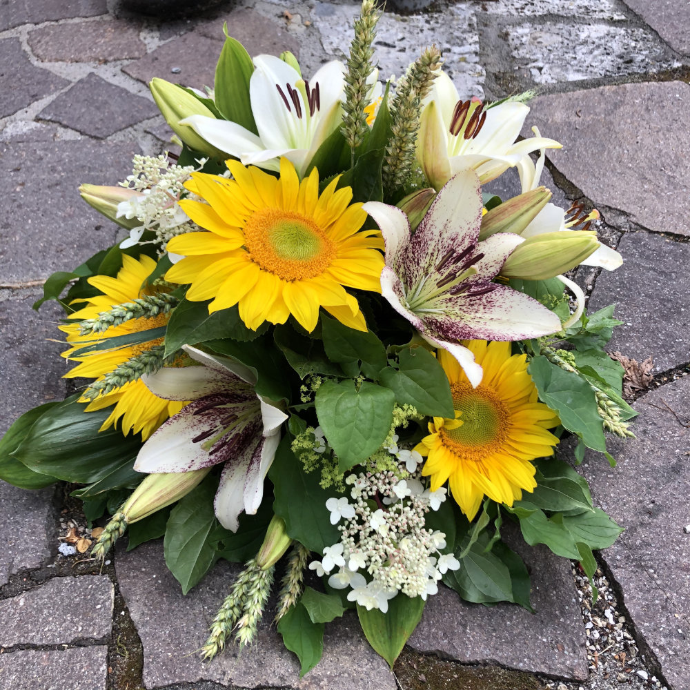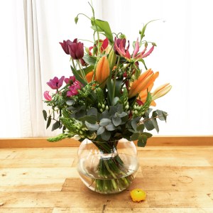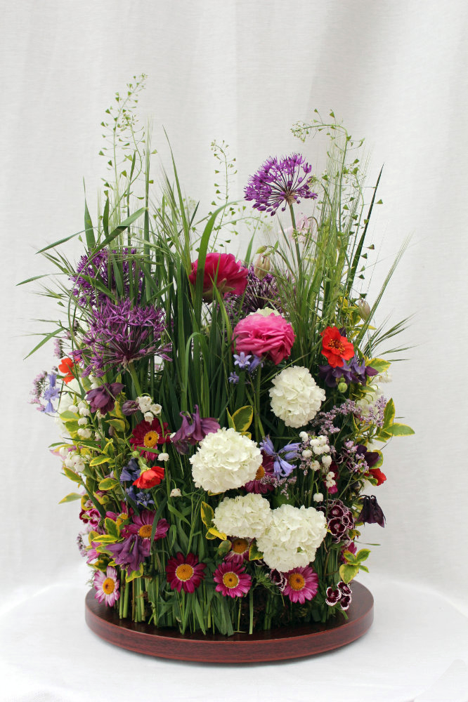 Herbstlicher Kranz umrahmt Kerzen in Beerentönen.Runder Brautstrauß mit Rosen, Eucalyptus und Schleierkraut.Objekte aus Kiefernzapfen, gewebt mit Wickeldraht, mit verschiedenen Füllungen.Wandschmuck: großer Loop mit üppigen Trockenblumen.Gartenobjekt aus verschiedenen Ranken und Zweigen.Knalliger Frühlingsstrauß im März mit Kaiserkrone, Ranunkeln, Anemonen und duftiger Mimose.Manchmal braucht man nur ein paar einzelne Blumen… zum Beispiel französische Tulpen.Gesteck mit Huflattich-Samenständen. Hier will ich durch Fülle die Schönheit dieses ‚einfachen‘ Werkstoffs hervorheben.Herbstlicher Türkranz, gebunden mit aufgefädelten Kastanien.